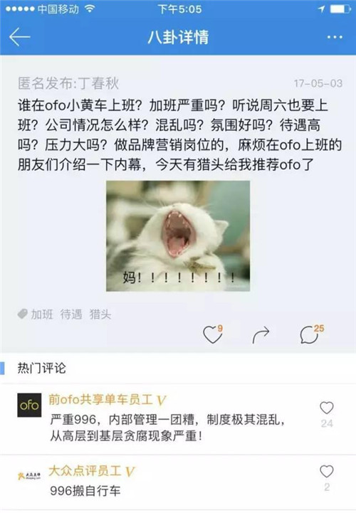 看似無限風(fēng)光的ofo,背后似乎隱憂重重。繼創(chuàng)始團(tuán)隊被資本架空的消息傳出之后,ofo內(nèi)部貪腐的消息也甚囂塵上。近日,實名社交平臺脈脈上,有ofo前員工爆料稱:這個公司從高層到基層,貪腐現(xiàn)象嚴(yán)重。