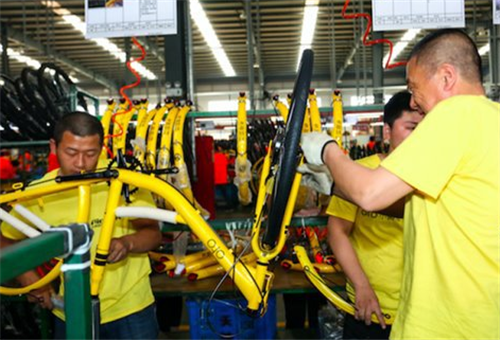 據(jù)工作人員介紹,制造一輛ofo共享單車一般需要經(jīng)過80道工序。此前飛鴿自行車的業(yè)務(wù)標準是“15秒放飛一只鴿子”,在與ofo共享單車合作以后,經(jīng)過對生產(chǎn)線包括分發(fā)的調(diào)整,目前已基本能達到同樣的水平。