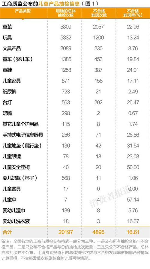 2017年5月,《消費(fèi)者報(bào)道》通過(guò)梳理全國(guó)126個(gè)工商與質(zhì)檢部門(mén)10年來(lái)公開(kāi)的20197條兒童產(chǎn)品抽檢數(shù)據(jù),作出不合格品牌黑榜警示,以及重點(diǎn)不合格產(chǎn)品類(lèi)型的消費(fèi)建議。