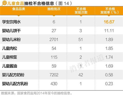 《消費(fèi)者報(bào)道》通過(guò)梳理國(guó)家食藥監(jiān)局2014年以來(lái)的12551條兒童食品抽檢數(shù)據(jù)發(fā)現(xiàn),兒童食品的合格率較高,達(dá)99%,而不合格品牌也是較為小眾品牌。本刊提醒消費(fèi)者謹(jǐn)慎購(gòu)買(mǎi)奶粉不合格次數(shù)較多的幾個(gè)品牌,如雅因樂(lè)、冠爾優(yōu)等。