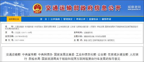 此外,新出臺的國家共享單車管理辦法,也意味著默許發(fā)展的政策紅利期正在成為過去時(shí)。8月2日,經(jīng)國務(wù)院同意,交通運(yùn)輸部、中央宣傳部、中央網(wǎng)信辦、國家發(fā)展改革委、工業(yè)和信息化部、公安部、住房城鄉(xiāng)建設(shè)部、人民銀行、質(zhì)檢總局、國家旅游局10部門聯(lián)合出臺了《關(guān)于鼓勵和規(guī)范互聯(lián)網(wǎng)租賃自行車發(fā)展的指導(dǎo)意見》。