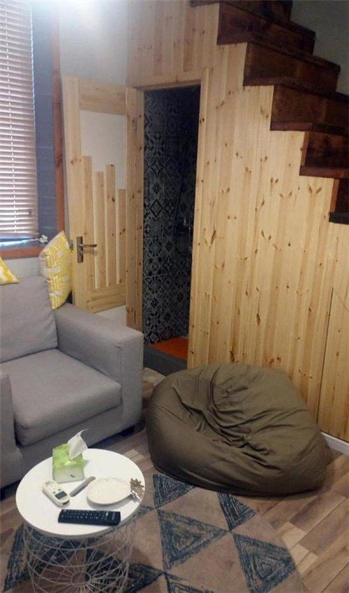 室內(nèi)總面積大概20平方米,被分隔為上下兩層。房屋雖小,家具及電器卻十分齊全。一樓有冰箱、洗衣機(jī)、電視等家電,一人坐的沙發(fā)和懶人沙發(fā)供休閑,布置緊湊,一角的衛(wèi)生間可容納一人洗漱;二層則放置了一張雙人床和一張氣墊床?!俺肆酪路环奖?,其余的體驗我們都挺滿意的”,兩人告訴記者,“民宿更有老上海味道,退房也只需要把鑰匙放在門口的箱子里,非常方便?!?/font>