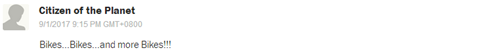 網(wǎng)友Citizen of the Planet:“自行車……自行車……我要更多自行車!?。 ?/font>