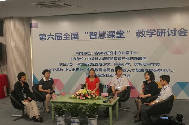 映象網(wǎng)訊 (記者 方圓 張娜)近日,鄭州市中原區(qū)華山路小學(xué)校長(zhǎng)周蕓帶領(lǐng)部分業(yè)務(wù)領(lǐng)導(dǎo)和教師,赴深圳參加由錢(qián)學(xué)森研究中心北京中心、中關(guān)村大成智慧教育產(chǎn)業(yè)創(chuàng)新聯(lián)盟主辦的第六屆全國(guó)智慧課堂教學(xué)研討會(huì)。本次活動(dòng)有來(lái)自北京、山東、河南、廣東、云南、四川、重慶等地的名師共同登臺(tái),展示了“智慧課堂”的魅力,激發(fā)了教學(xué)熱情,分享了教育智慧。其中華山路小學(xué)的“動(dòng)感課堂”教學(xué)展示受到了廣泛關(guān)注和一致好評(píng),本次帶隊(duì)參加活動(dòng)的校長(zhǎng)周蕓,也成為本次活動(dòng)中受到中央電視臺(tái)采訪(fǎng)的唯一嘉賓。