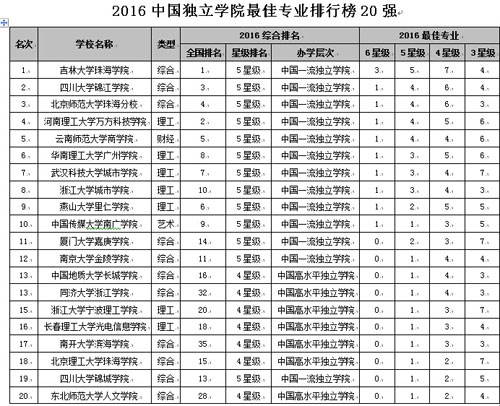 在最新2016中國各地區(qū)大學(xué)最佳專業(yè)排行榜中,北京市高校有74專業(yè)榮膺中國七星級專業(yè),蟬聯(lián)第1,上海列第2,江蘇居第3,湖北列第4,湖南居第5。在2016中國民辦大學(xué)最佳專業(yè)排行榜中,武昌首義學(xué)院、文華學(xué)院、西安外事學(xué)院、山東英才學(xué)院和西安歐亞學(xué)院名列前5強。在2016中國獨立學(xué)院最佳專業(yè)排行榜中,吉林大學(xué)珠海學(xué)院、四川大學(xué)錦江學(xué)院、北京師范大學(xué)珠海分校、河南理工大學(xué)萬方科技學(xué)院和云南師范大學(xué)商學(xué)院名列前5強。