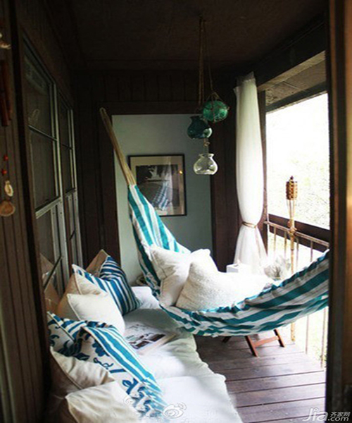 在陽臺上掛上一張吊床,不管周末是暖洋洋還是陰雨綿綿,蕩悠在自家的陽臺上,聽自然的聲音。