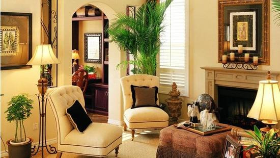 客廳是家中最常放置室內(nèi)植物的空間,客廳配置植物,首先應(yīng)著眼于裝飾美,數(shù)量不宜多,太多不僅雜亂,而且生長不好。植物的選擇還需注意大小搭配。