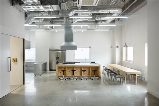 廚房也被安排在五樓,跟會議室在一起。出完飯以后,還可以選擇逛逛圖書館。將兩個不同功能的空間結(jié)合在一起,也是一種特有的解決方案。可以試著用烹飪的方式把知識轉(zhuǎn)化成行動。