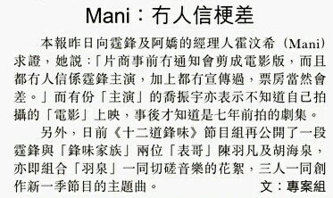 港媒采訪阿嬌經(jīng)紀人霍汶希有關《情劍》的報道