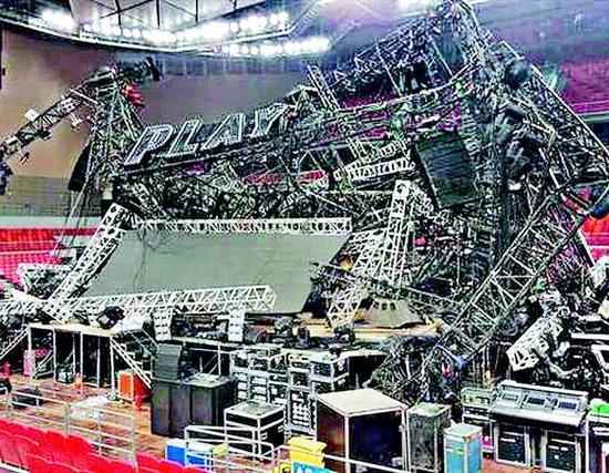 據(jù)臺灣媒體報道,蔡依林(Jolin)本周六(31日)預(yù)定在廣西南寧舉行“蔡依林2015 PLAY世界巡回演唱會”,現(xiàn)場舞臺近日已幾乎準備搭建完成,不料,該舞臺29日下午5點多,多條大型鋼鐵結(jié)構(gòu)的燈架突然倒塌砸下來,現(xiàn)場一片混亂,造成1名工人意外死亡,且有13名工人受傷。Jolin人還沒到現(xiàn)場,本來預(yù)計今日(30日)抵達,若是在演唱會當天才發(fā)生倒塌,后果更是不堪設(shè)想。經(jīng)紀人表示正在了解狀況,是否取消演唱會,仍要看舞臺修復(fù)狀況。