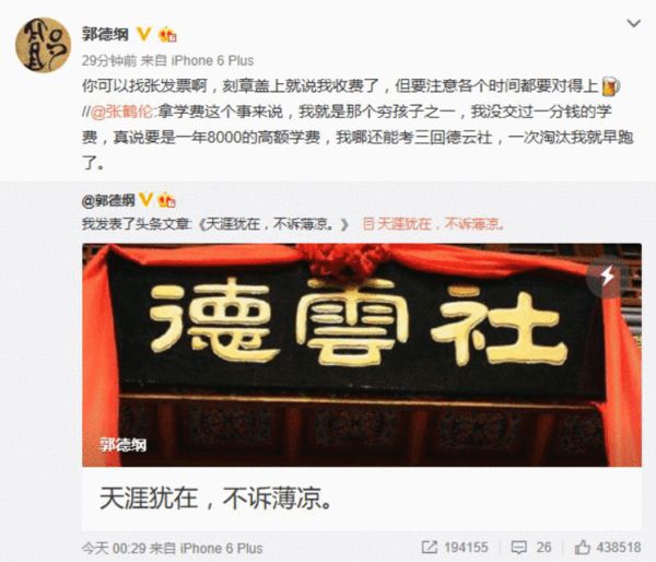 郭德綱回應(yīng)曹云金曬發(fā)票