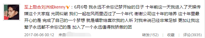 劉洲成離開(kāi)天娛:至上勵(lì)合像家人 我們深?lèi)?ài)彼此