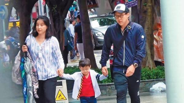 日前下午1點(diǎn)多,霍啟剛變身family man和愛妻帶4歲兒子霍中曦去中環(huán)。一家三口在皇后大道走去上環(huán)方向。因?yàn)橄铝擞辏糁嘘卮┥狭擞暄?,媽媽就手拎兩把傘。霍啟剛戴著cap帽,穿著一身運(yùn)動(dòng)服。見霍啟剛不時(shí)手抱愛兒,而霍中曦雙眼像極了媽媽;鼻以下就更像爸爸,皮膚雪白,笑得好萌。老公抱著愛子,郭晶晶就在身邊握著霍中曦的小手,逗兒子玩。當(dāng)天,郭晶晶素顏,容光煥發(fā),面頰飽滿,上身仍有些許“幸福肥”。幸福一家走到中環(huán)廣場(chǎng)準(zhǔn)備取車前,霍啟剛放下愛子,和愛妻一人一邊托著小王子?;糁嘘貖A在父母中間瞇眼笑,然后父母有默契地陪著兒子玩起了“人肉秋千”,逗得霍中曦開心大笑,父母也跟著笑,一家三口超溫馨!