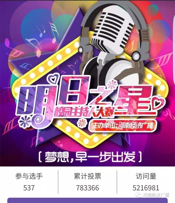 河南經(jīng)濟(jì)廣播·第三屆“明日之星”校園主持人大賽備受矚目,微信投票更是達(dá)到了五百二十一萬的訪問量!經(jīng)過鄭州、安陽、南陽、三門峽、駐馬店、洛陽、開封、新鄉(xiāng)、商丘、林州、漯河、新鄭,十二個(gè)賽區(qū)十四個(gè)賽點(diǎn),二千六百余人的激烈角逐;再到?jīng)Q賽時(shí)選手的精彩表現(xiàn)。一路走來,有驚喜、有歡樂、有學(xué)習(xí)、有思考。