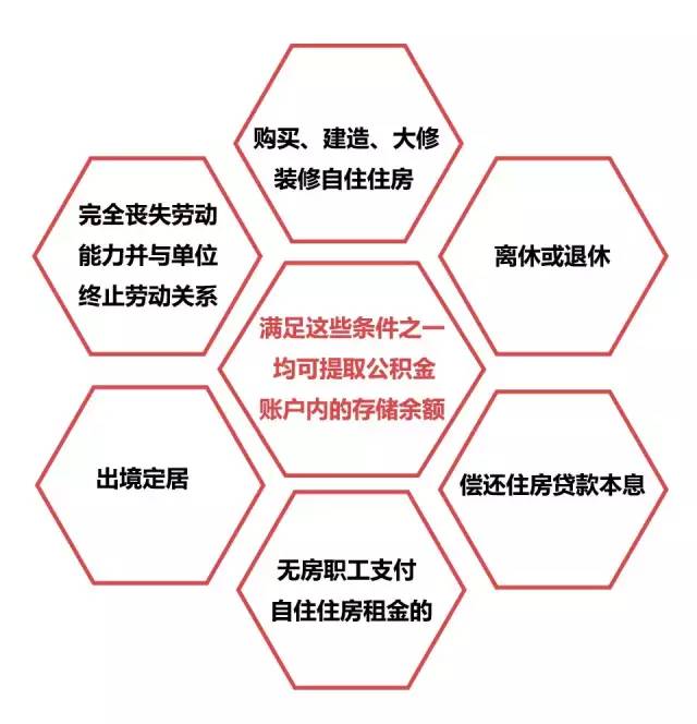 職工有以上六種情形之一的,可以提取職工住房公積金賬戶內(nèi)的存儲余額。其中,因離休、退休;完全喪失勞動能力,并與單位終止勞動關(guān)系;出境定居,提取職工住房公積金的,應(yīng)當(dāng)同時注銷職工住房公積金賬戶。