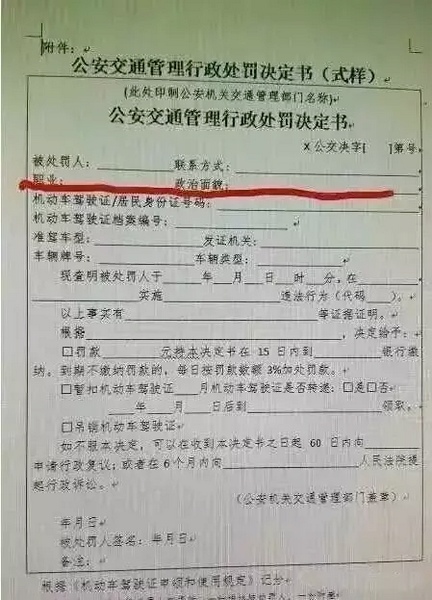 《通知》要求,從7月1日起,各地在按照一般程序?qū)煌ㄟ`法行為作出行政處罰時(shí),應(yīng)當(dāng)調(diào)查被處罰人的政治面貌和職業(yè)信息,并在制作《公安交通管理行政處罰決定書》時(shí)填寫。