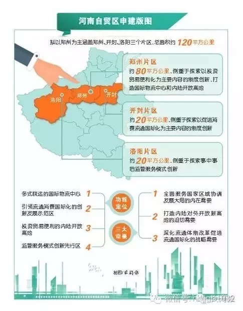據(jù)了解,河南自貿(mào)區(qū)實(shí)施范圍上,擬以鄭州為主涵蓋鄭州、開封、洛陽三個片區(qū),總面積約120平方公里。