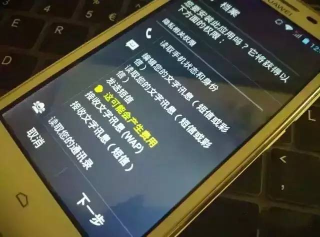 可以看到這個app偽裝的很好,名字就叫做“檔案”,細心的朋友會發(fā)現,這個app還需要讀取手機身份以及短信甚至是通訊錄!一般的app都沒有這些權限需求的,顯然這是一個木馬病毒,記者就沒有繼續(xù)進行下一步了。