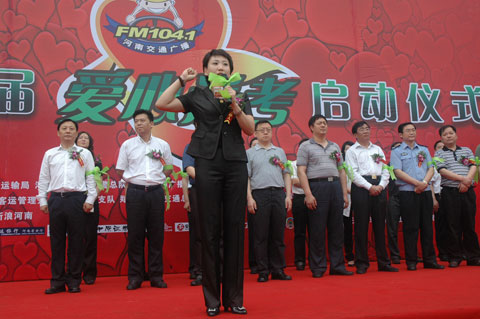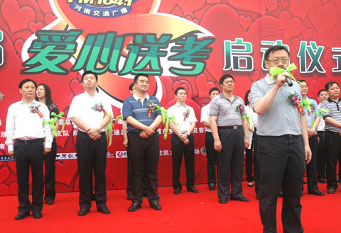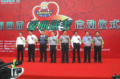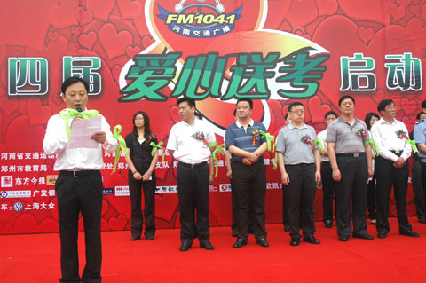 6月4號上午,隨著河南人民廣播電臺總編輯張大寶宣布啟動。河南交通廣播第四屆全省愛心送考大型公益活動正式拉開帷幕。河南省交通運(yùn)輸廳道路運(yùn)輸局、河南省公安廳交警總隊(duì)、河南人民廣播電臺以及鄭州市教育局、鄭州市交警支隊(duì)、鄭州市客運(yùn)管理處、鄭州市公交總公司等多家單位的領(lǐng)導(dǎo)出席了活動儀式。