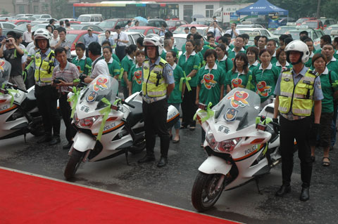 活動現(xiàn)場匯集了許多愛心車友,鄭州市交警支隊(duì)也派出三個交警“飛鷹”小組參加啟動儀式