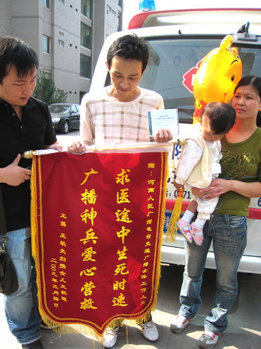 4月6日,在河南人民廣播電臺(tái)空中電波的幫助和協(xié)調(diào)下,衛(wèi)生、高速路政、交警等部門齊心協(xié)力,展開了一場(chǎng)挽救生命的接力大行動(dòng),信陽一名生命垂危的手足口病患兒王然得到了及時(shí)救助。經(jīng)過近一個(gè)月的精心治療,5月5日上午,王然康復(fù)出院,坐上了回家的列車。