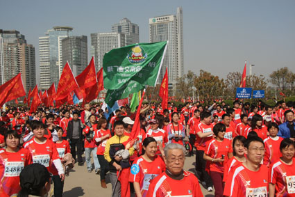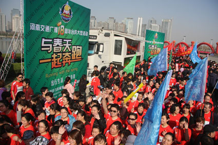 3月27上午,綠城鄭州陽(yáng)光明媚,春意盎然,2011年中國(guó)鄭開(kāi)國(guó)際馬拉松賽分別在鄭州市鄭開(kāi)大道和鄭東新區(qū)商務(wù)內(nèi)環(huán)鳴槍舉行,來(lái)自28個(gè)國(guó)家和地區(qū)的近3萬(wàn)名選手參加了比賽。河南交通廣播也組織了由1041名車(chē)友組成的“千人跑友團(tuán)”參賽,大家一起跑進(jìn)春天,共同慶祝交通廣播成立18周年。