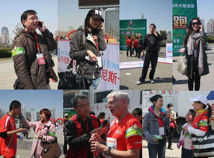 在歷時(shí)四個(gè)小時(shí)的直播過(guò)程里,現(xiàn)場(chǎng)大型直播車(chē)就像漂浮在旗幟和人群大海洋中的帆船,顛簸在聲浪中的現(xiàn)場(chǎng)主持人與主直播室的主持人默契配合,共完成與現(xiàn)場(chǎng)記者連線(xiàn)20多個(gè),分別邀請(qǐng)了鄭州市副市長(zhǎng)劉東、1041跑友團(tuán)、冠軍選手、情侶馬拉松參賽者、志愿者等嘉賓走進(jìn)現(xiàn)場(chǎng)直播車(chē),就全民健身的話(huà)題進(jìn)行溝通、交流、分享。而守候在多個(gè)點(diǎn)位的15名現(xiàn)場(chǎng)記者用手機(jī)連線(xiàn)的方式,為聽(tīng)眾傳遞出賽場(chǎng)激昂的心跳聲、沸騰的歡呼聲,并通過(guò)電波飛揚(yáng)在春天里,彌漫在春風(fēng)中!