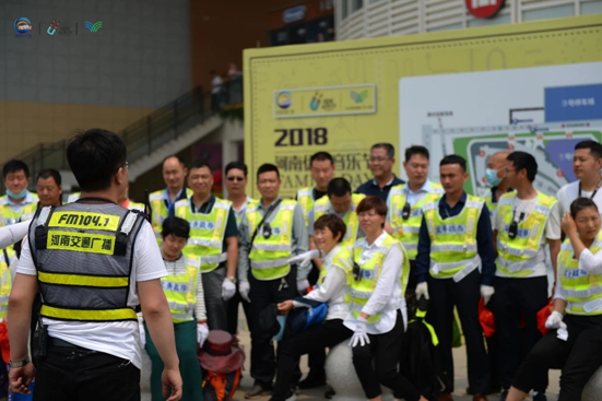 為了避免擁堵,我們請(qǐng)來了楊華民警官的義務(wù)疏導(dǎo)隊(duì)員們,兩天的時(shí)間,他們堅(jiān)守在場(chǎng)外自己的崗位。