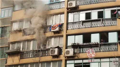 李道洲沒有絲毫猶豫,便和妻子的物業(yè)同事各提兩個(gè)滅火器,兩人一前一后,從跑向失火的住宅樓。