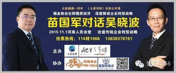 對話吳曉波,作為關注社會,運籌帷幄的社會精英怎會不心動?你想提問嗎?在微信平臺“駕車1066”留下您的問題,苗國軍將把您的精彩問題帶到現場。