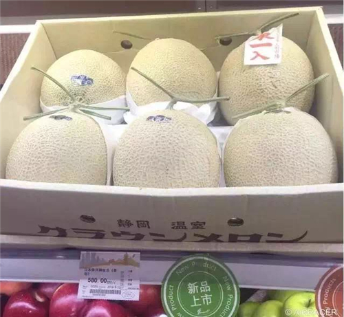 某超市一藤一瓜的靜岡網(wǎng)紋瓜 580元/個