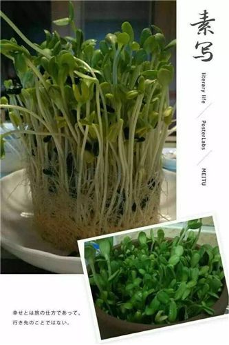芽苗菜的生產(chǎn)周期短,7~10天就可收獲,而且生產(chǎn)場所不限,技術(shù)簡單易學(xué),只需會播種、澆水、調(diào)盤簡單操作即可。