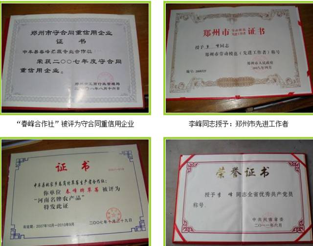 目前合作社有生產(chǎn)、銷售和綜合服務(wù)三個(gè)組。2006年合作社的產(chǎn)品獲得了無(wú)公害認(rèn)證,春峰牌草莓2012年通過(guò)綠色食品基地和綠色食品認(rèn)證,也是河南省首家拿到草莓綠色食品證書的品牌。