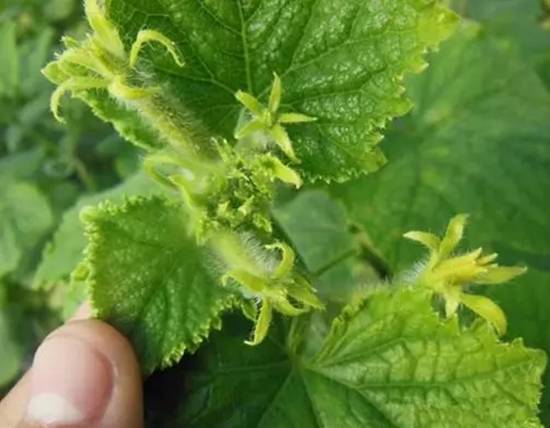 當氣溫降低后,尤其是伴隨雨雪天氣發(fā)生時,由于太陽光輻射減少會導(dǎo)致地溫降低,這樣一來植物的地上組織和地下根系的呼吸作用都會下降,呼吸下降后生理代謝就會緩慢,植物吸收肥水的能力就會減弱,如果此時作物正處于苗期則易出現(xiàn)僵苗的現(xiàn)象;如果處于開花座果期,則常常表現(xiàn)為各種生理性病害的發(fā)生,如花打頂。這種癥狀在黃瓜等瓜類蔬菜上最為常見,即植株的生長點積在大量雌花或小瓜,植株停止生長?;ù蝽?shù)某霈F(xiàn)是由于低溫促使了花芽過度分化,雌花數(shù)量增加,而植株缺乏足夠的養(yǎng)分供其生長,蔓不能伸長,造成雌花生在在植株的頂端。