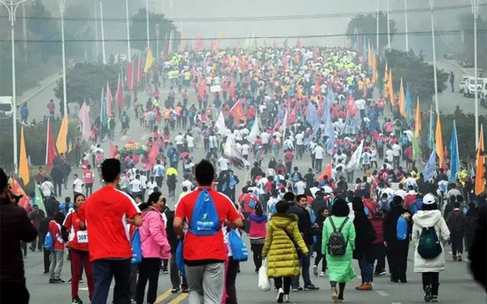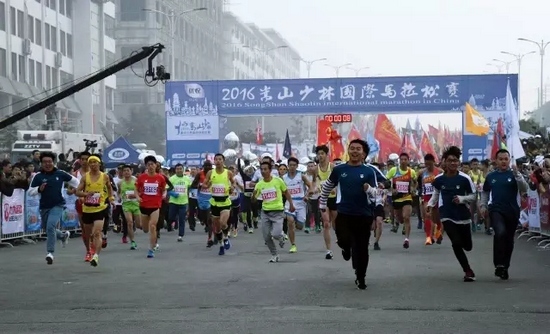 11月13日上午,隨著2016嵩山少林國際馬拉松賽發(fā)令汽笛鳴響,來自世界16個國家和地區(qū)的近15000名跑友跑出起點(diǎn),瞬間匯聚成流動的七彩人潮,為嵩山美景增架起一道絢麗的彩虹。