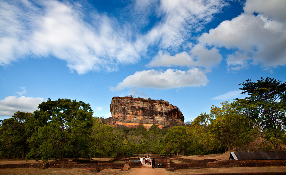 獅子巖,斯里蘭卡斯基里亞的巨巖王朝,是一座建立在橘紅色巖石上的宮殿,這塊巨巖高兩百公尺,由遠(yuǎn)處看,獅子巖是塊俯伏在丹不拉東北部平地。頂部平坦貌似獅子的大石,背上曾藏了一個建在二百米高空的花園宮殿。