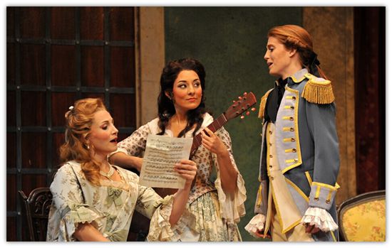 《你們可知道,什么是愛情》是少年凱魯比諾被叫到伯爵夫人房間里時(shí)所唱的一段詠嘆調(diào),此時(shí)的他情竇初開,幻想得到伯爵夫人的愛情,又有些害怕,在曲中表現(xiàn)得生動(dòng)細(xì)膩。