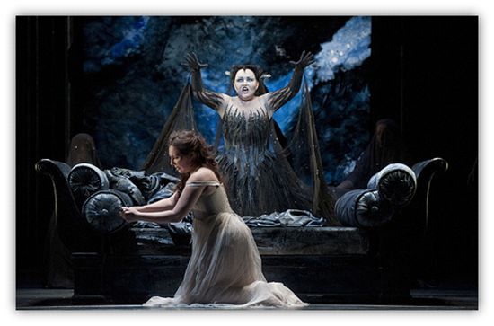 《復(fù)仇火焰在心中燃燒》是夜后不惜以斷絕母女關(guān)系相威脅,命令帕米娜殺死薩拉斯特羅所唱的一段詠嘆調(diào)。這是一首情感激越、充滿仇恨、難度極高的花腔女高音唱段,音樂的華麗與力度非比尋常,是花腔女高音聲部技巧與表現(xiàn)力高水平的體現(xiàn),被視為這一聲部在歌劇曲目中難度最高之列。