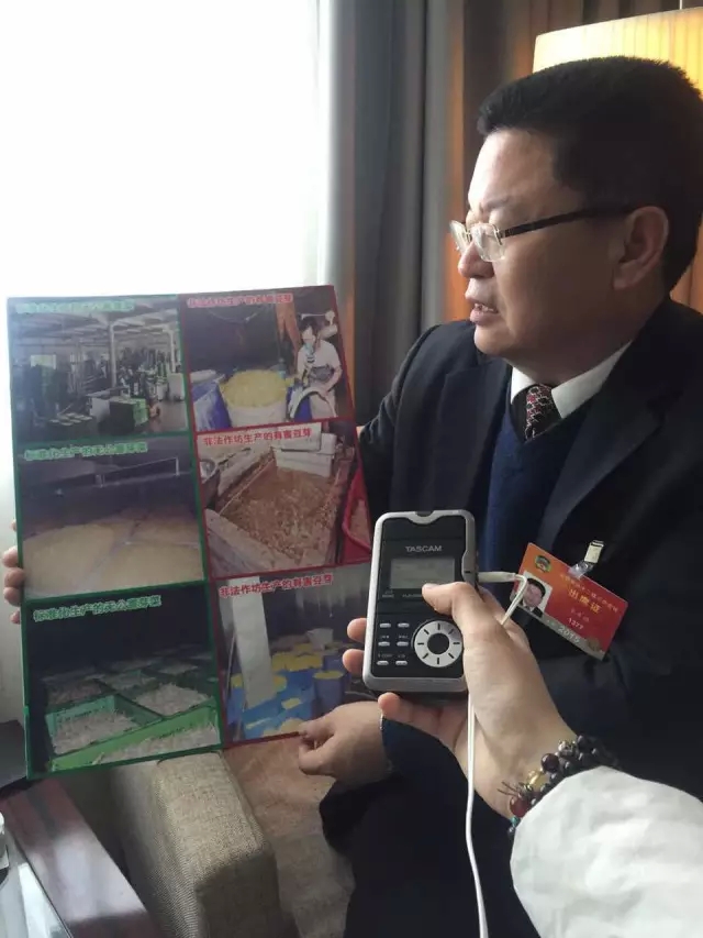 為了發(fā)言更直觀生動(dòng),住豫全國政協(xié)委員宋豐強(qiáng)會(huì)前專門準(zhǔn)備了“調(diào)研作業(yè)“,介紹各類食品安全問題以及有害豆芽生產(chǎn)制作流程的宣傳板。