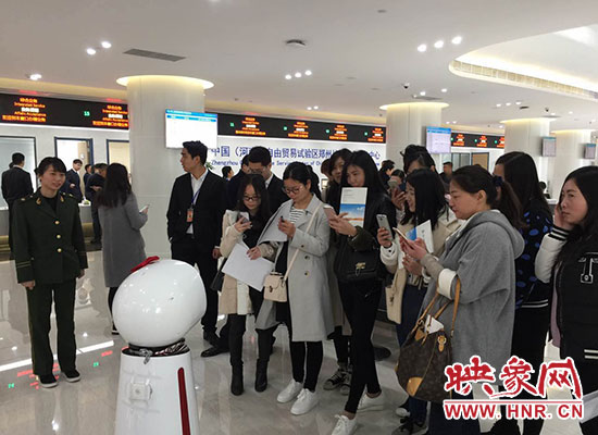 映象網(wǎng)快訊(記者 駱瓊 阮海峰 王邵怡 文/圖)4月1日上午,中國(河南)自由貿(mào)易試驗區(qū)掛牌儀式在鄭州片區(qū)綜合服務中心舉行。這里入駐了17個政府部門,可辦理211項業(yè)務,為區(qū)域內(nèi)的企業(yè)和居民辦事提供了極大的便利。