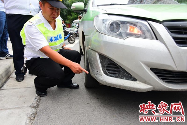 映象網(wǎng)快訊(記者 邱延波 文/圖)9月5日中午12時許,鄭州市福元路上,一輛電動車疑與出租車發(fā)生碰撞,電動車上的15歲女生倒地后昏迷不醒。隨后,出租車離開現(xiàn)場,熱心市民騎電動車狂追涉嫌肇事的出租車并將其攔下。
