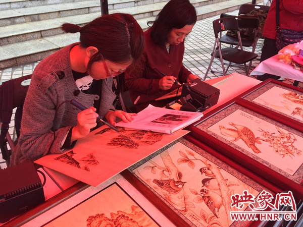非物質文化遺產傳人現(xiàn)場烙畫,每副畫需要兩天方可完成