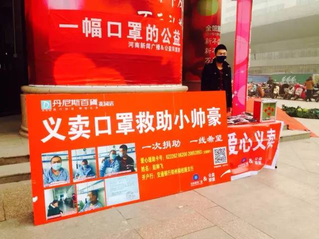 河南新聞廣播持續(xù)關(guān)注16歲白血病少年趙帥豪籌集50萬(wàn)元移植費(fèi)的進(jìn)展。由我們和公益同盟一起發(fā)起的口罩義賣活動(dòng)仍在進(jìn)行中。在花園路丹尼斯義賣點(diǎn),王女士帶著自己12歲的兒子柳義獻(xiàn)上了一份愛(ài)心。