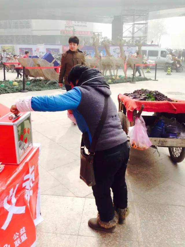 最讓小編感動(dòng)的,是這位推著板車賣水果的阿姨,50歲了還在沿街叫賣已經(jīng)很不容易,卻還是從自己的包里拿出了10塊錢投入募捐箱,連一張正面照也不肯留下,只說(shuō)“我知道難的戶都可不容易,咱沒(méi)多的,少的有?!?/p>