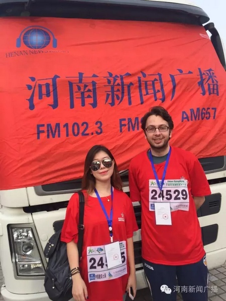 國(guó)家大賽,當(dāng)然要有國(guó)際友人哦。這位美女來自哈薩克斯坦,中文說的非常溜,這位型男來自烏干達(dá)。友誼第一比賽第二,兩位國(guó)際友人說,比賽完要好好逛逛我們河南的青山秀水~