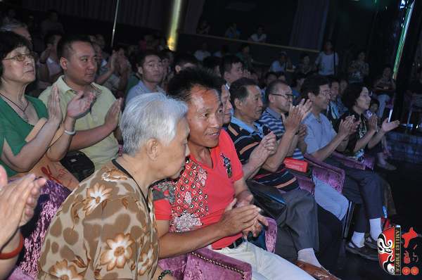 在當(dāng)天的演出中,除了關(guān)小鳳的精彩演唱之外,中國戲劇梅花獎得主、豫劇名丑金不換,陳門再傳弟子、中國戲劇梅花獎得主徐俊霞,關(guān)靈鳳親傳弟子霍梅英,戲曲名票龐笑天、吳素芹等也表演了各自的拿手好戲,為關(guān)小鳳助興演出。原西安獅吼劇團的高材生、陳素真大師的學(xué)生陳素英今年78歲,在豫劇《三上轎》中她扮演婆婆,為關(guān)小鳳甘當(dāng)綠葉,其老到的表演也獲得了戲迷的熱情掌聲。鶴壁市豫劇團團長、豫劇名丑金不換剛剛擔(dān)任完河南省第七屆青年演員大賽的評委,就不辭勞苦地趕到演出現(xiàn)場。他介紹說,自己和關(guān)小鳳是封丘于店戲校的同學(xué),當(dāng)年他們那一屆學(xué)生當(dāng)中關(guān)小鳳是表現(xiàn)最優(yōu)秀的。關(guān)小鳳經(jīng)歷坎坷,但對藝術(shù)卻非常執(zhí)著,看到老同學(xué)的精彩表現(xiàn)他非常高興,希望關(guān)小鳳能把祥符調(diào)陳派藝術(shù)發(fā)揚下去,祝福她在藝術(shù)道路上越走越好!