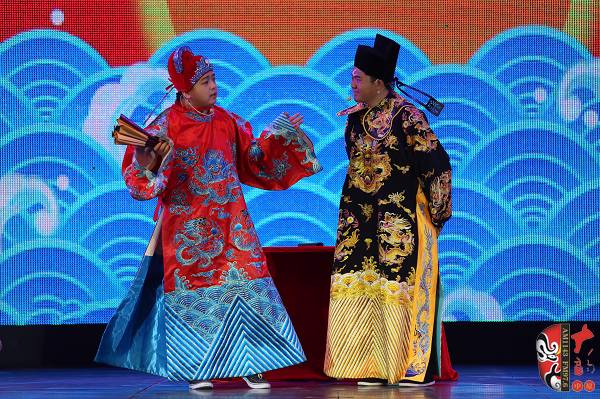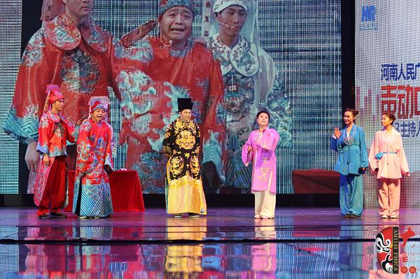 主持人月陽和他的女兒、剛剛榮獲第十屆河南省少兒戲曲小梅花大賽“小狀元”、《梨園春》明星小擂主張楚怡聯(lián)合表演了《花打朝》選段,楚怡人小本領(lǐng)大,小小年紀(jì)的她唱起《花打朝》有模有樣,引來掌聲和笑聲一片;由戲曲廣播主持人丁蘭、李鋮、小胖、媛媛、一凡、趙坤、李鑫、張琳、高興、文博等表演的戲曲小品《新鍘美案》,集穿越、荒誕、娛樂為一體,成為晚會最火爆的節(jié)目,現(xiàn)場喝彩聲、掌聲不絕于耳,令人回味無窮;由本次主持人見面會導(dǎo)演、戲曲廣播總監(jiān)木子和主持人池城聯(lián)袂演唱的豫劇《必正與妙?!贰疤焐先碎g共團(tuán)圓”選段,表演優(yōu)雅、浪漫,唱腔極具專業(yè)水準(zhǔn),把觀眾帶到了濃濃的中秋月夜美好意境之中。