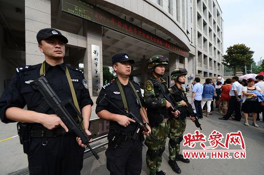 鄭州警方根據(jù)全市考區(qū)的實(shí)際情況進(jìn)行了警力部署:市內(nèi)每個(gè)考點(diǎn)安排轄區(qū)派出所民警6名、交巡警6名、特警4名;上街、中牟、滎陽(yáng)、新鄭、新密、登封每個(gè)考點(diǎn)安排執(zhí)勤民警16名,其中:派出所民警6名、交警6名、特警4名。為全力服務(wù)考生,鄭州警方要求各單位執(zhí)勤民警在開考前1個(gè)小時(shí)到達(dá)指定崗位,認(rèn)真履行各項(xiàng)職責(zé),考試結(jié)束40分鐘后撤崗。對(duì)位于繁華路段、周邊治安復(fù)雜或交通擁堵路段的學(xué)校有針對(duì)性的增派警力,切實(shí)加強(qiáng)考點(diǎn)及周邊安全保衛(wèi)工作。