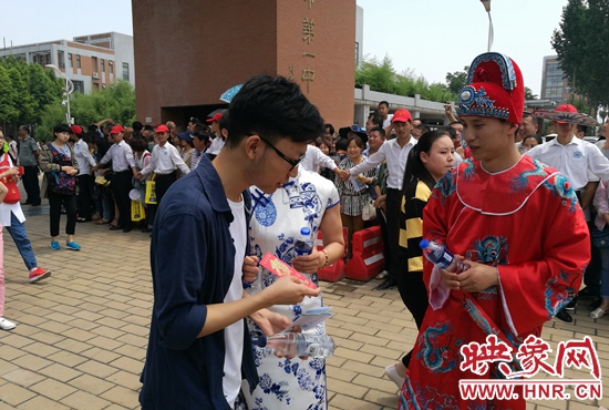 除了特殊的公交助考服務(wù)車,公交一公司1路車長(zhǎng)郭磊穿著狀元服為參加高考的考生送去“紅包”,讓不少考生頗感意外。而且引來(lái)了不少家長(zhǎng)和考生的競(jìng)相合影。