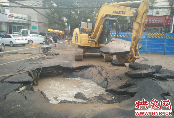 鄭州自來水公司迅速組織維修人員到場搶修。負責該區(qū)域維修任務(wù)的三強公司政七街維修隊維修一班第一時間趕赴現(xiàn)場止水、搶修。維修人員分班作業(yè),一組擺放警示標志,協(xié)調(diào)交警封閉道路,一組緊急關(guān)閉相關(guān)閥門實施止水,調(diào)運搶修機械、安排送水車趕往現(xiàn)場。